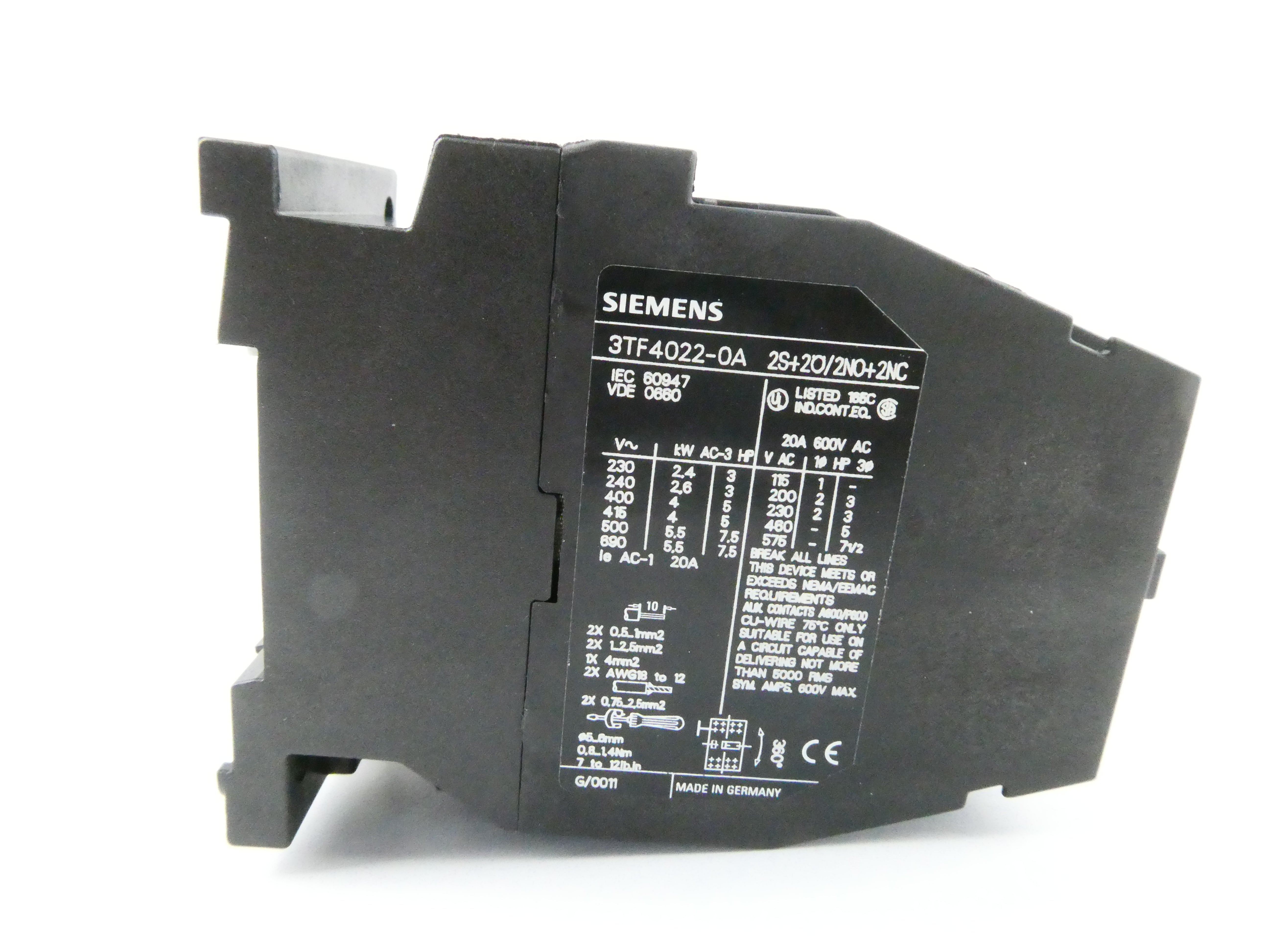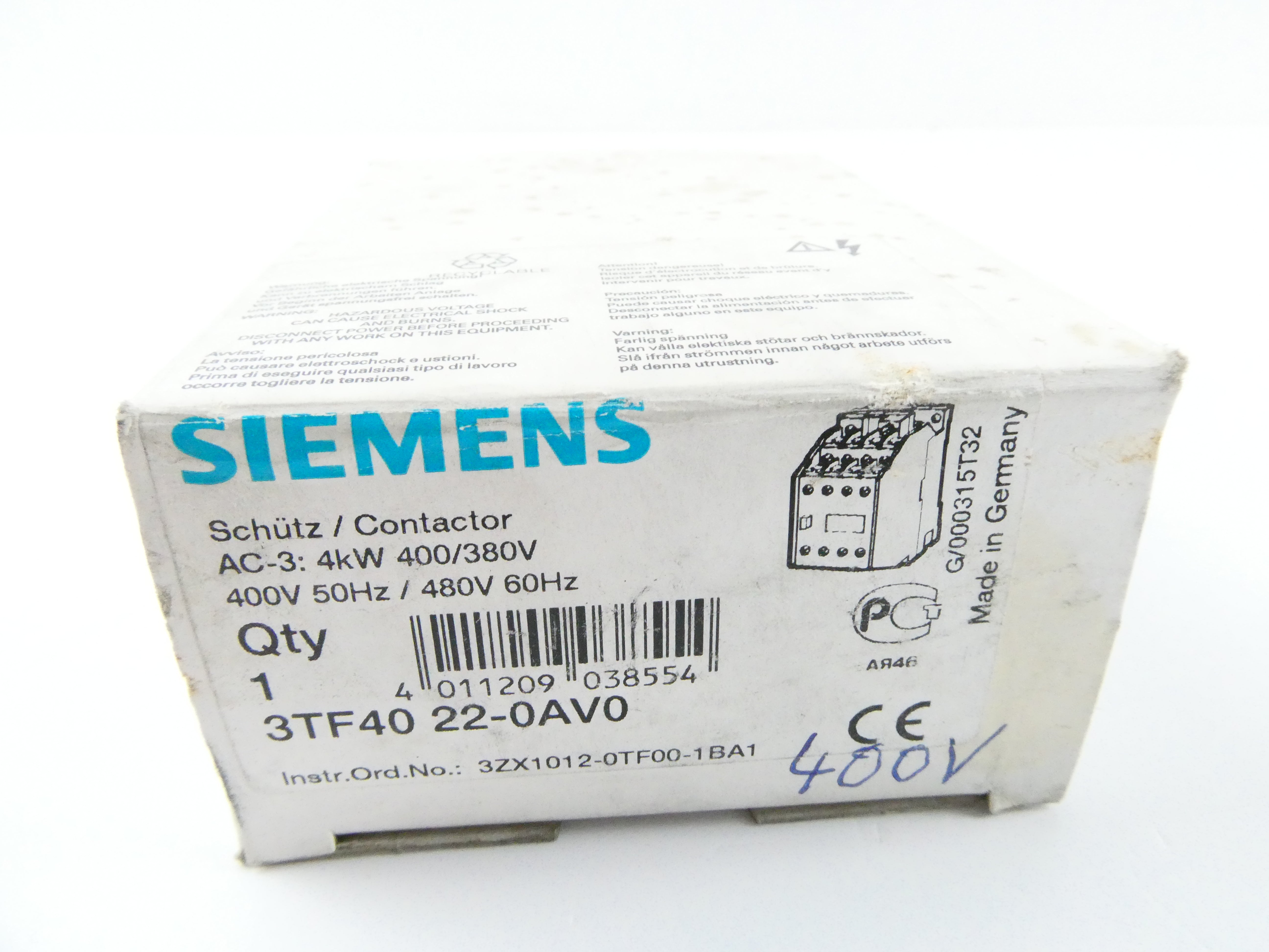 SIEMENS 3TF4022-0AV0 (400V 50Hz / 480V 60Hz) SCHÜTZ