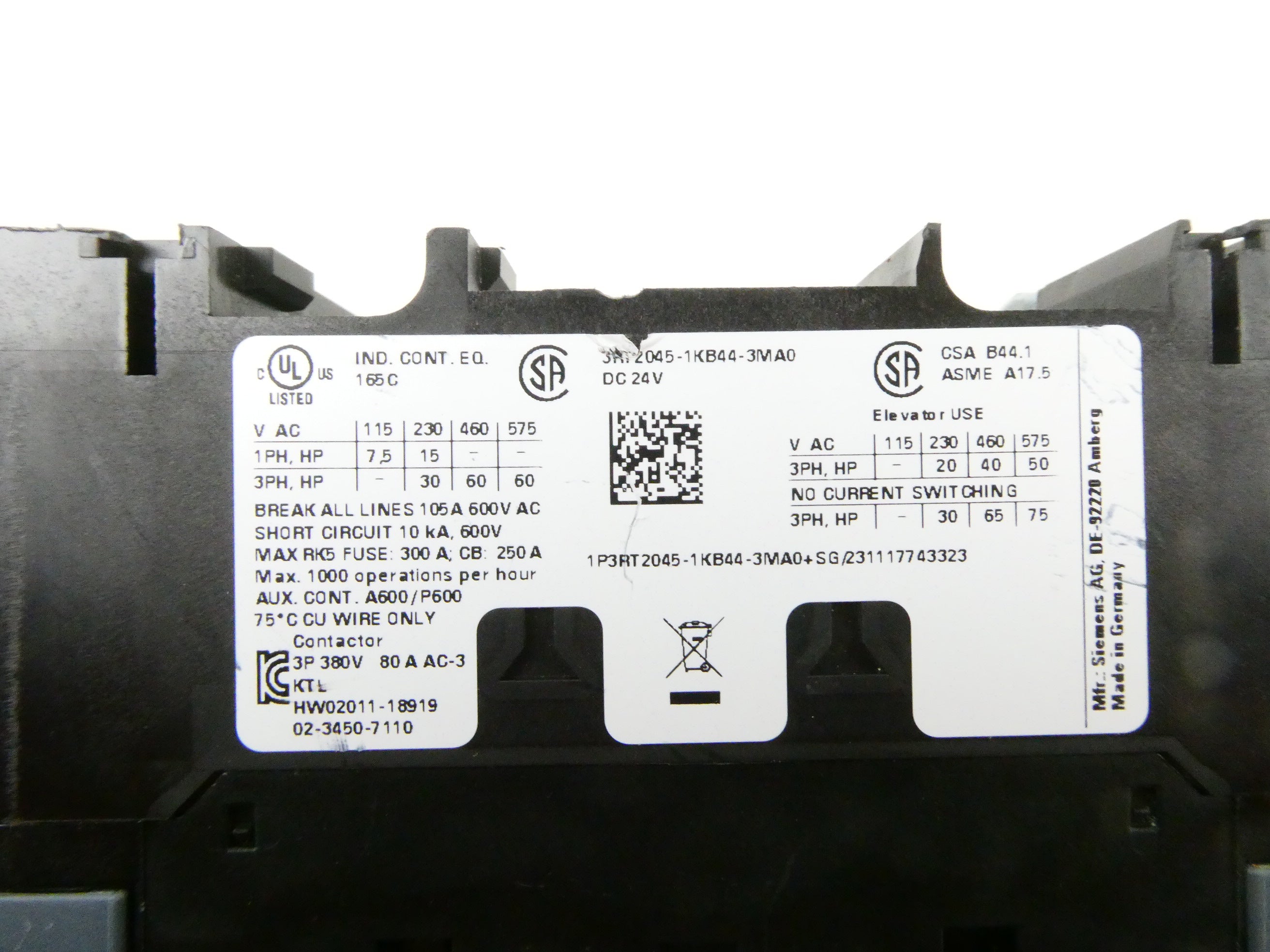 SIEMENS 3RT2045-1KB44-3MA0 (24VDC) SIRIUS SCHÜTZ *E03*