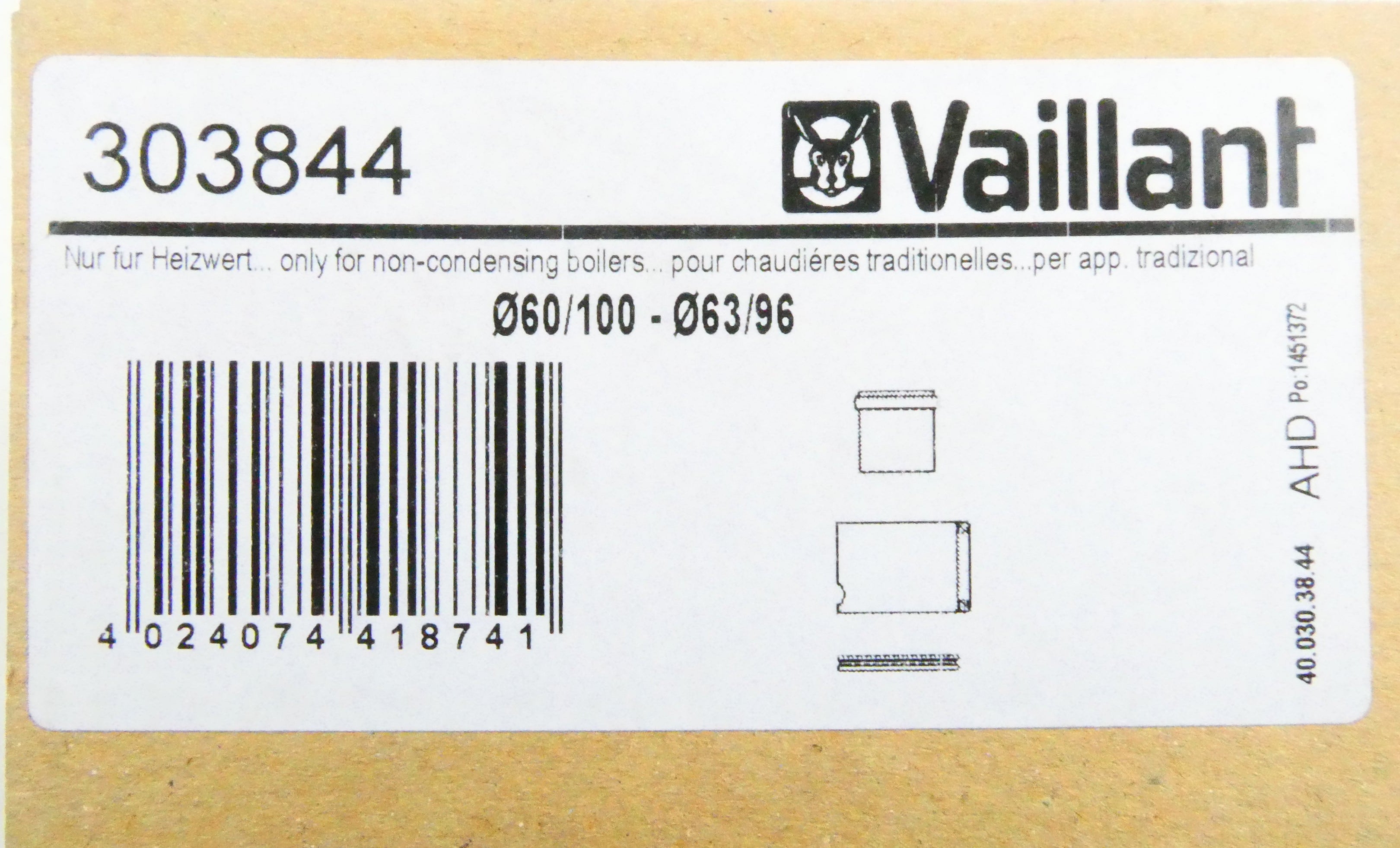 VAILLANT 303844 GERÄTEANSCHLUSSSTÜCK D: 60/100 - 63/96 (nur für Heizwert)