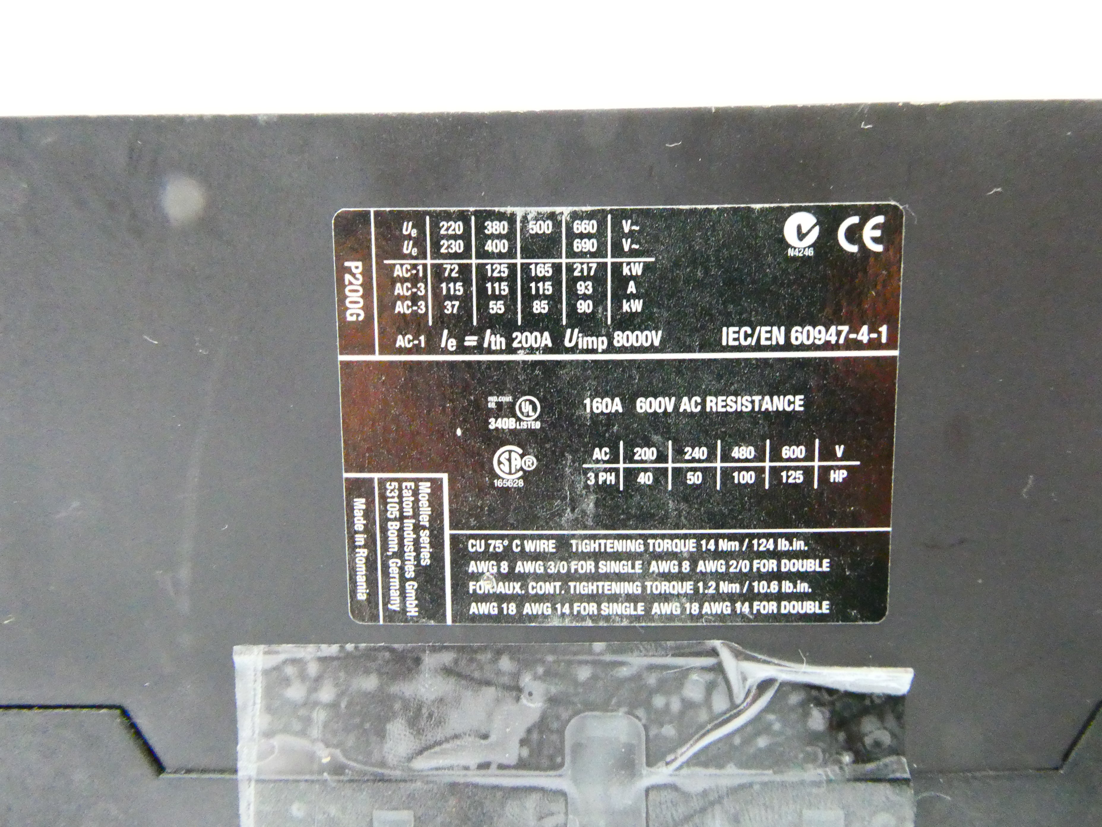 EATON DILMP200 (XTCF200G) (190-240V 50-60Hz) POWER CONTACTOR