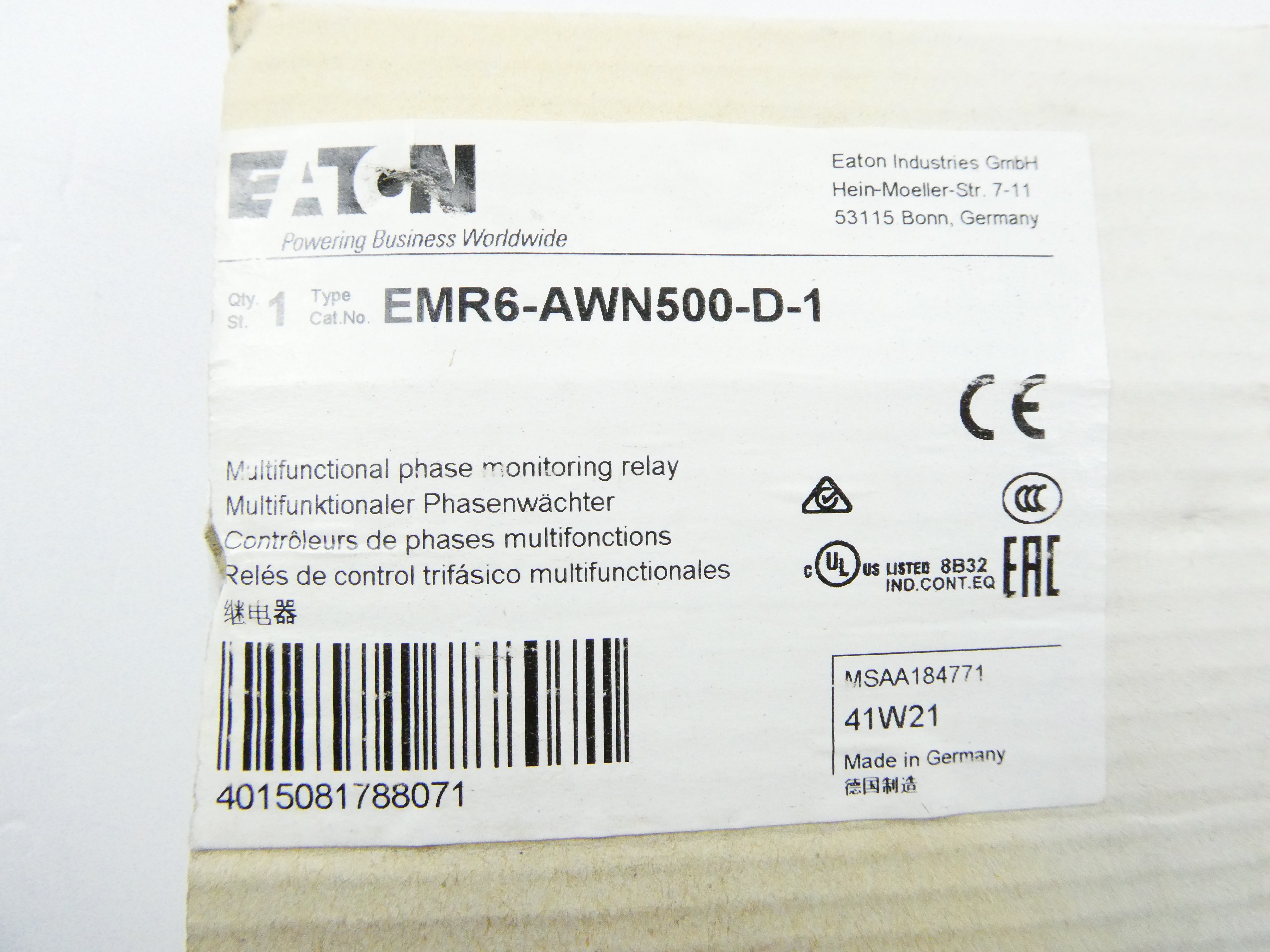EATON EMR6-AWN500-D-1 MULTIFUNCTIONAL PHASE MONITOR