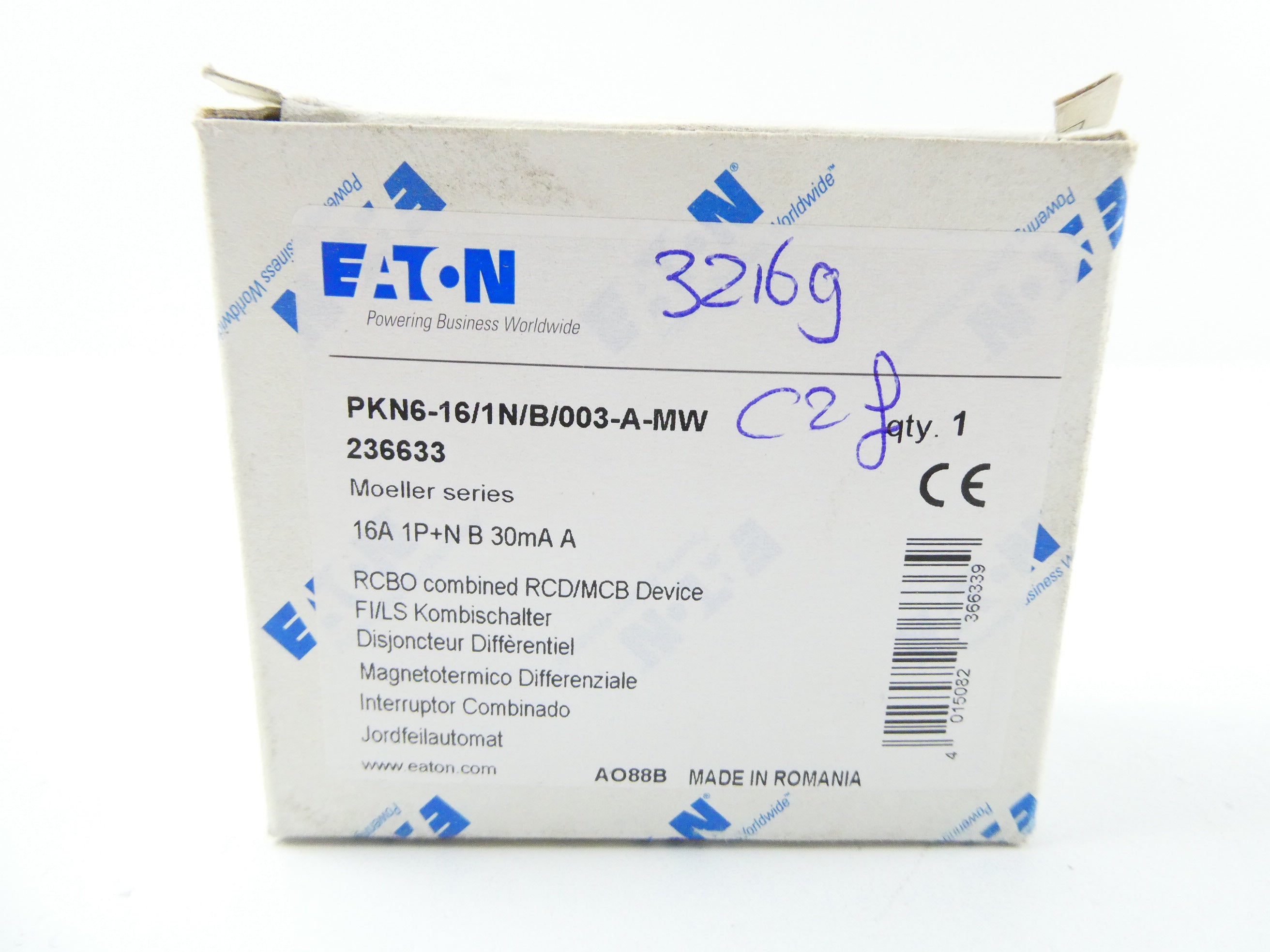 EATON PKN6-16/1N/B/003-A-MW (236633)(16A 1p+NB 30mA A) FI/LS COMBINATION SWITCH