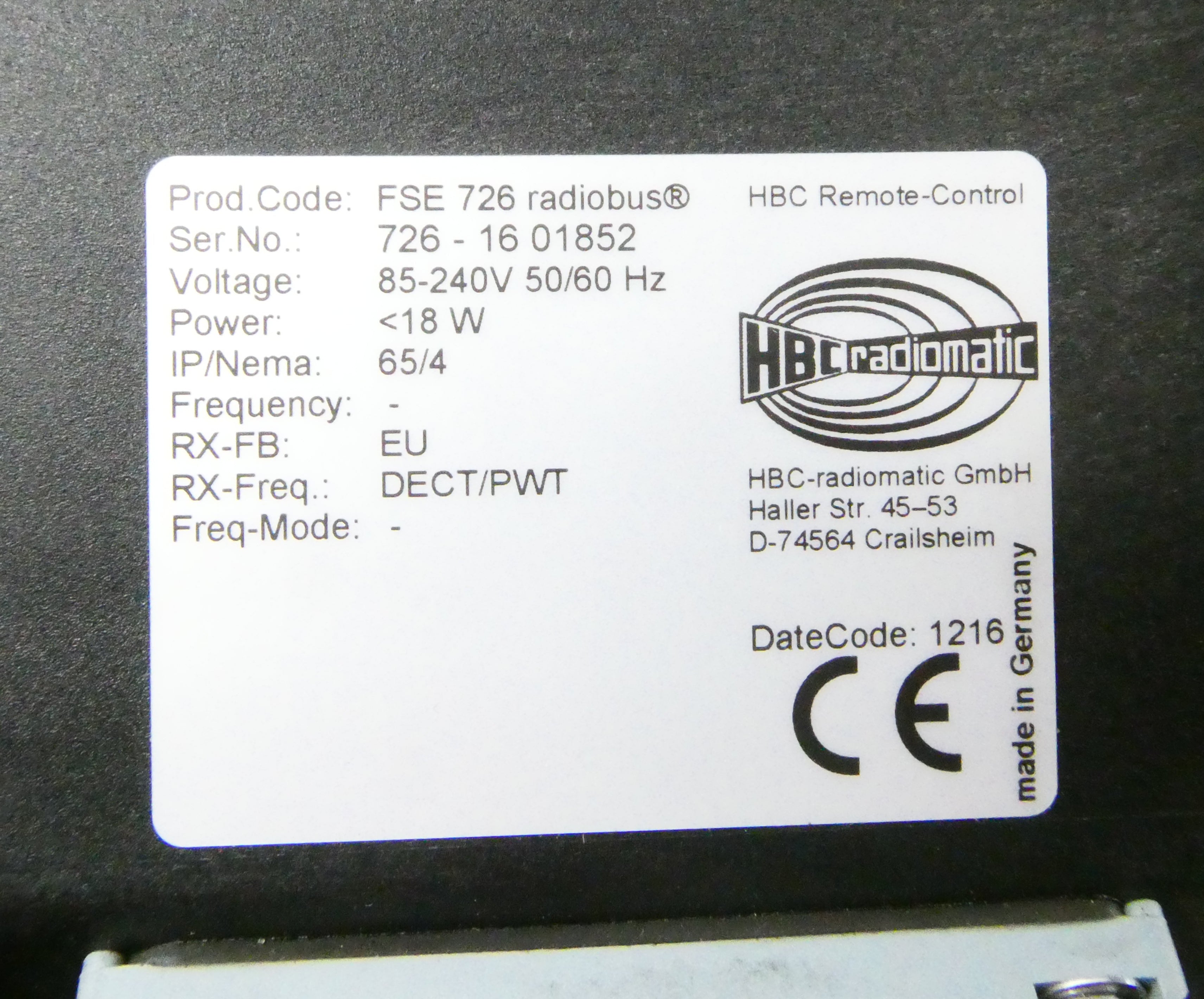 HBC RADIOMATIC FSE 726 RADIOBUS (726-1601852) (85-240V) CRANE RADIO RECEIVER