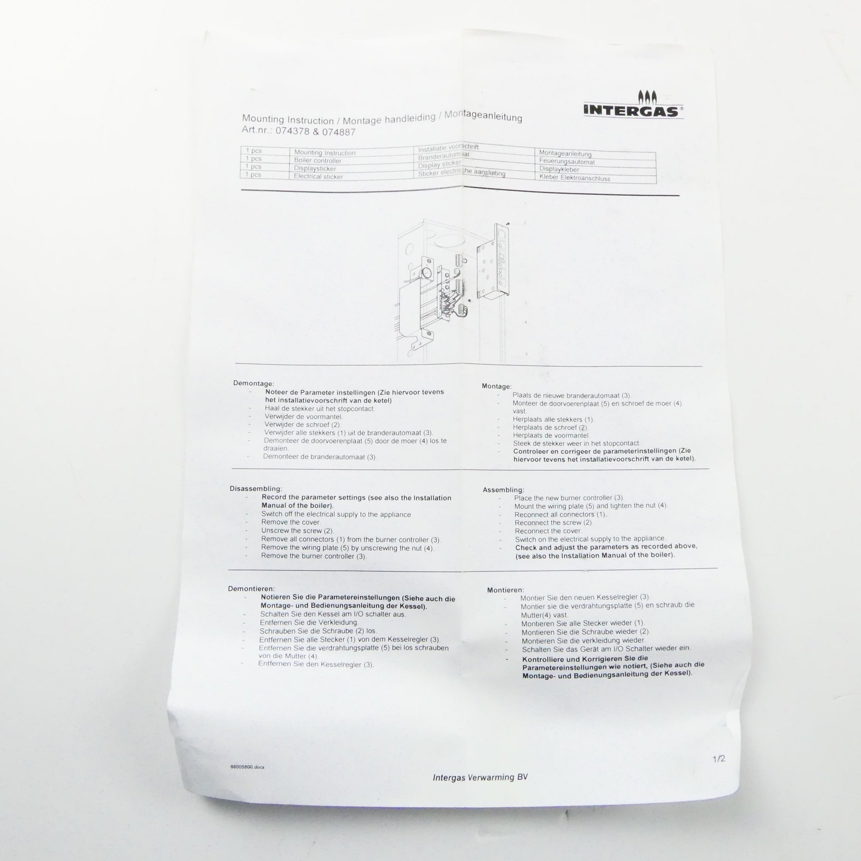 INTERGAS 074887 BURNER CONTROL
