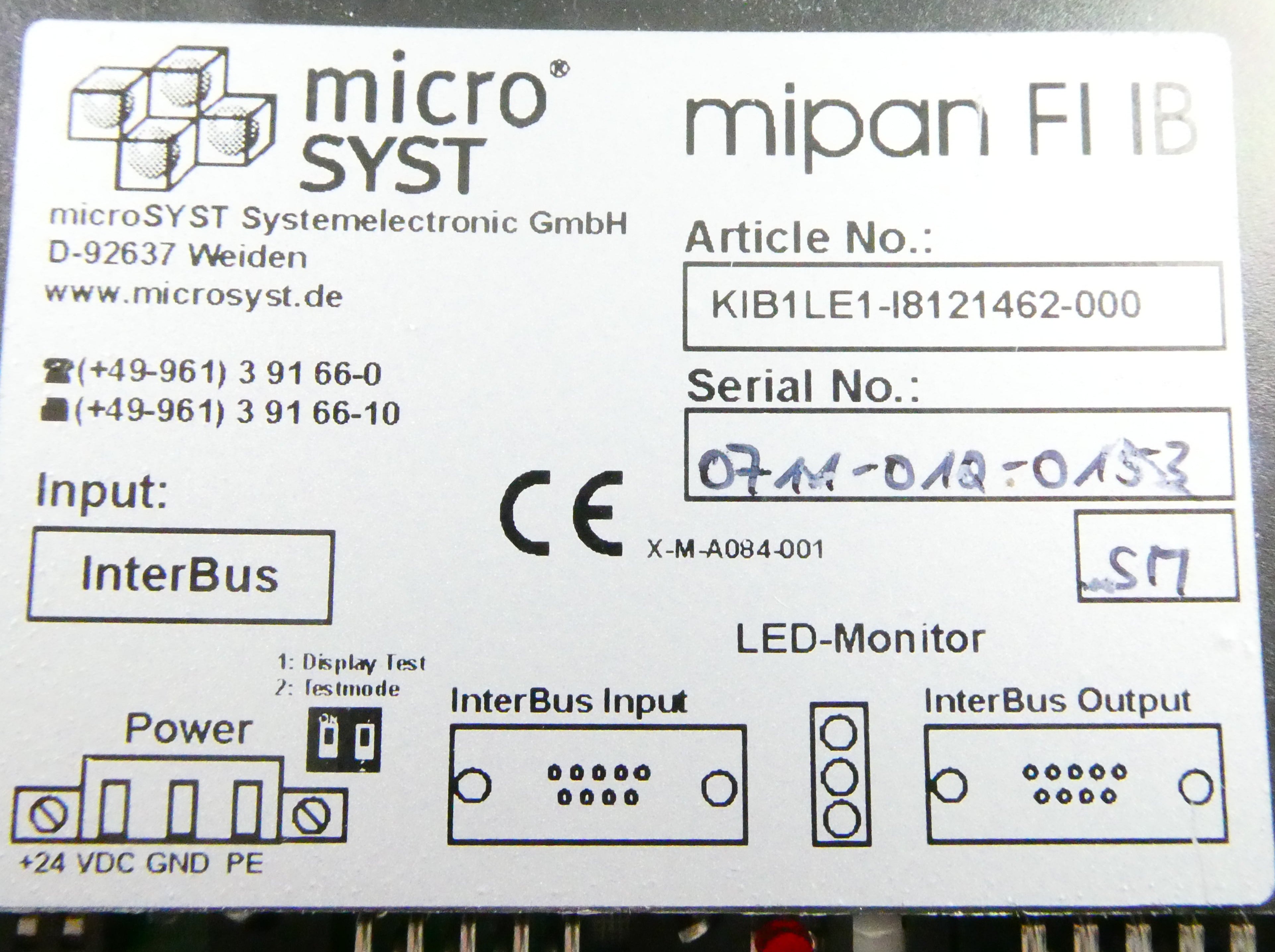 MICRO SYST MIPAN FI IB KIB1LE1-I8121462-000 MOUNTED DISPLAY (for paint supply)