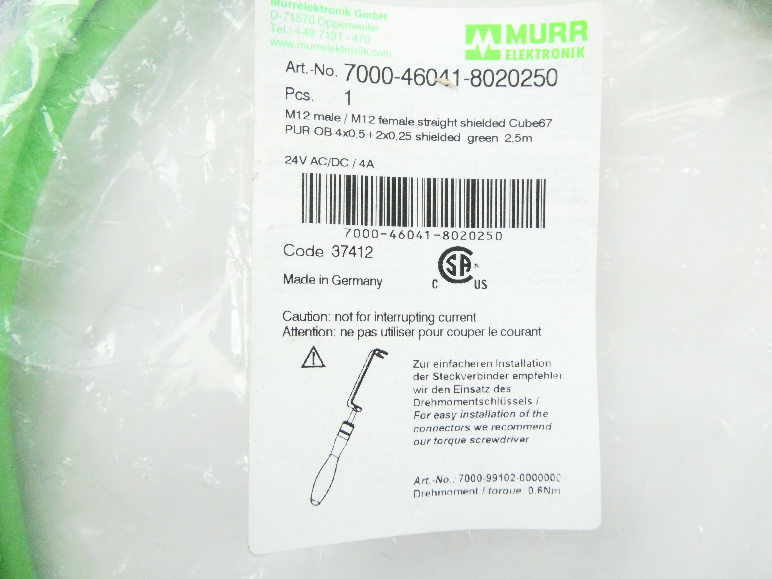 MURR ELEKTRONIK 7000-46041-8020250 (2.5m) SENSOR/ACTOR CONNECTOR