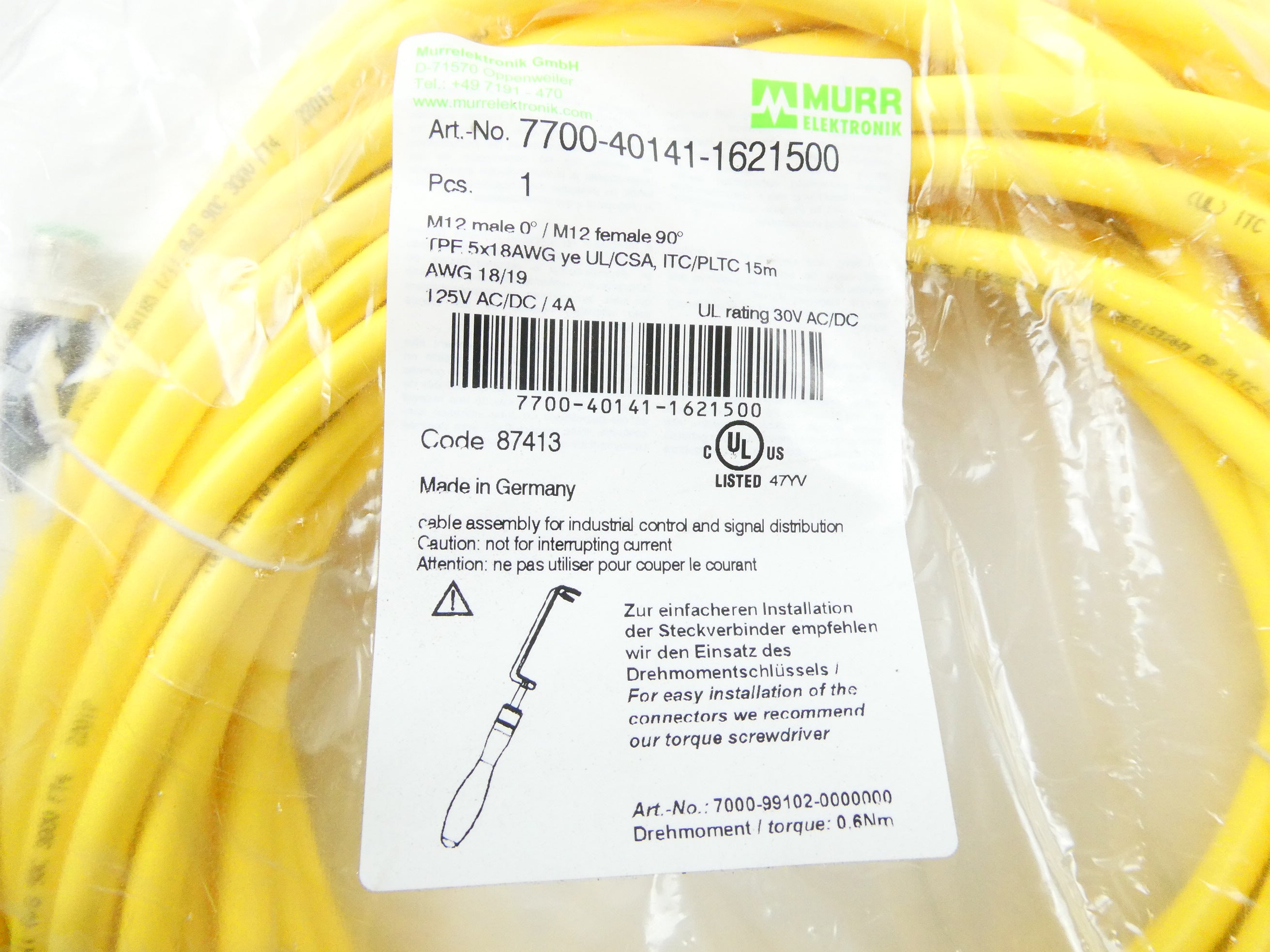MURR ELEKTRONIK 7700-40141-1621500 (15m) CONNECTION CABLE