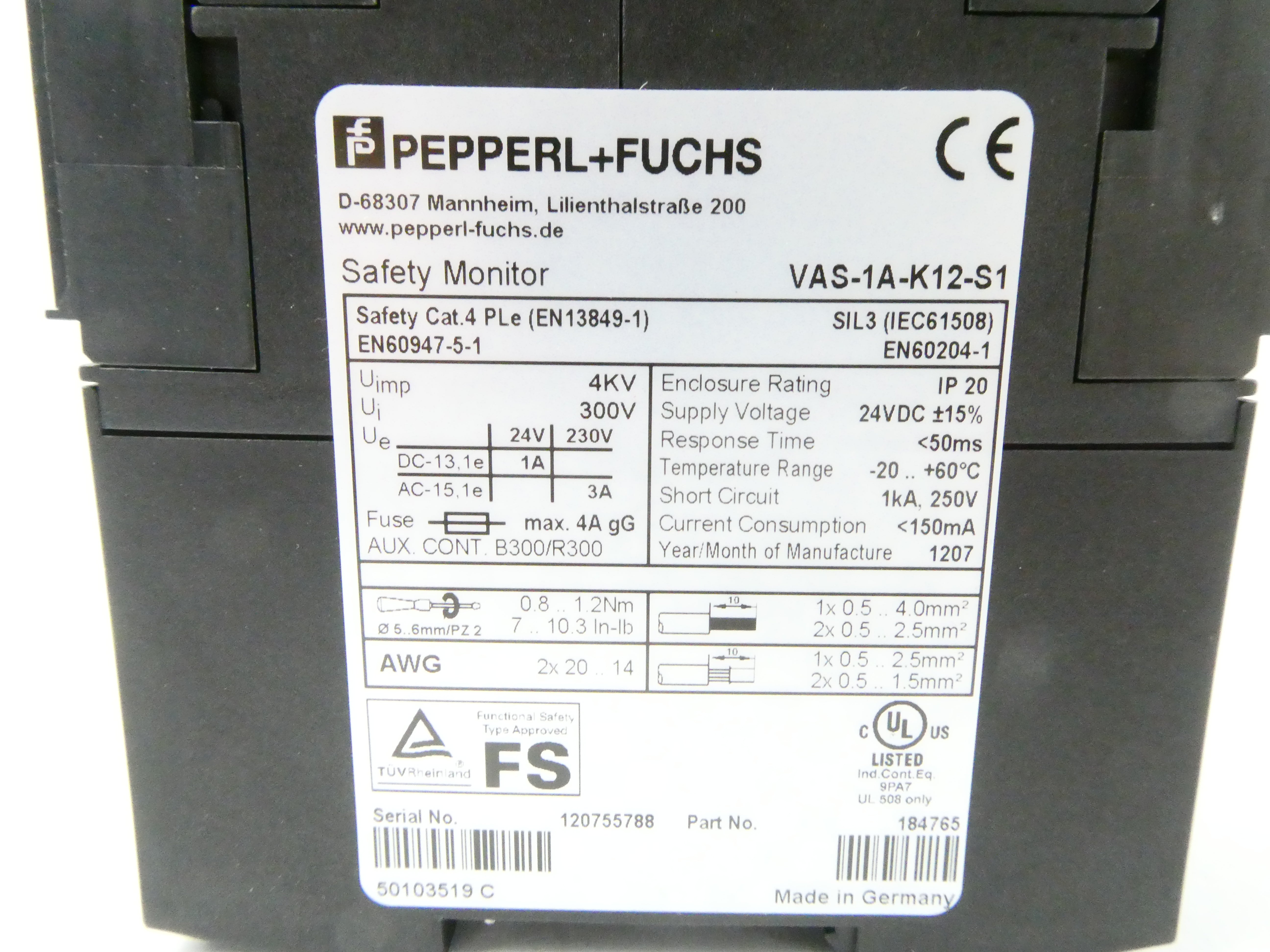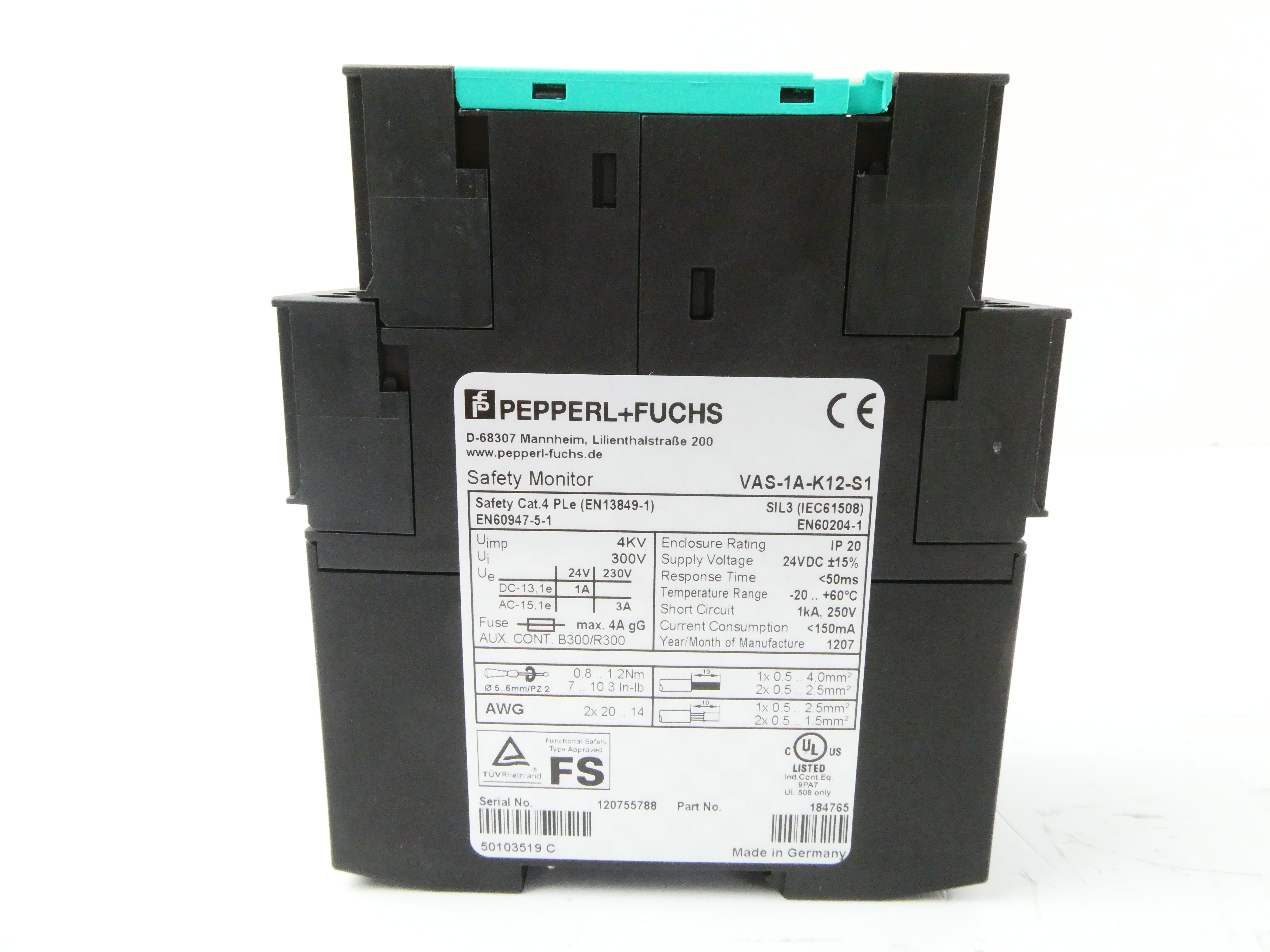 PEPPERL+FUCHS VAS-1A-K12-S1 (184765) SAFETY MONITOR