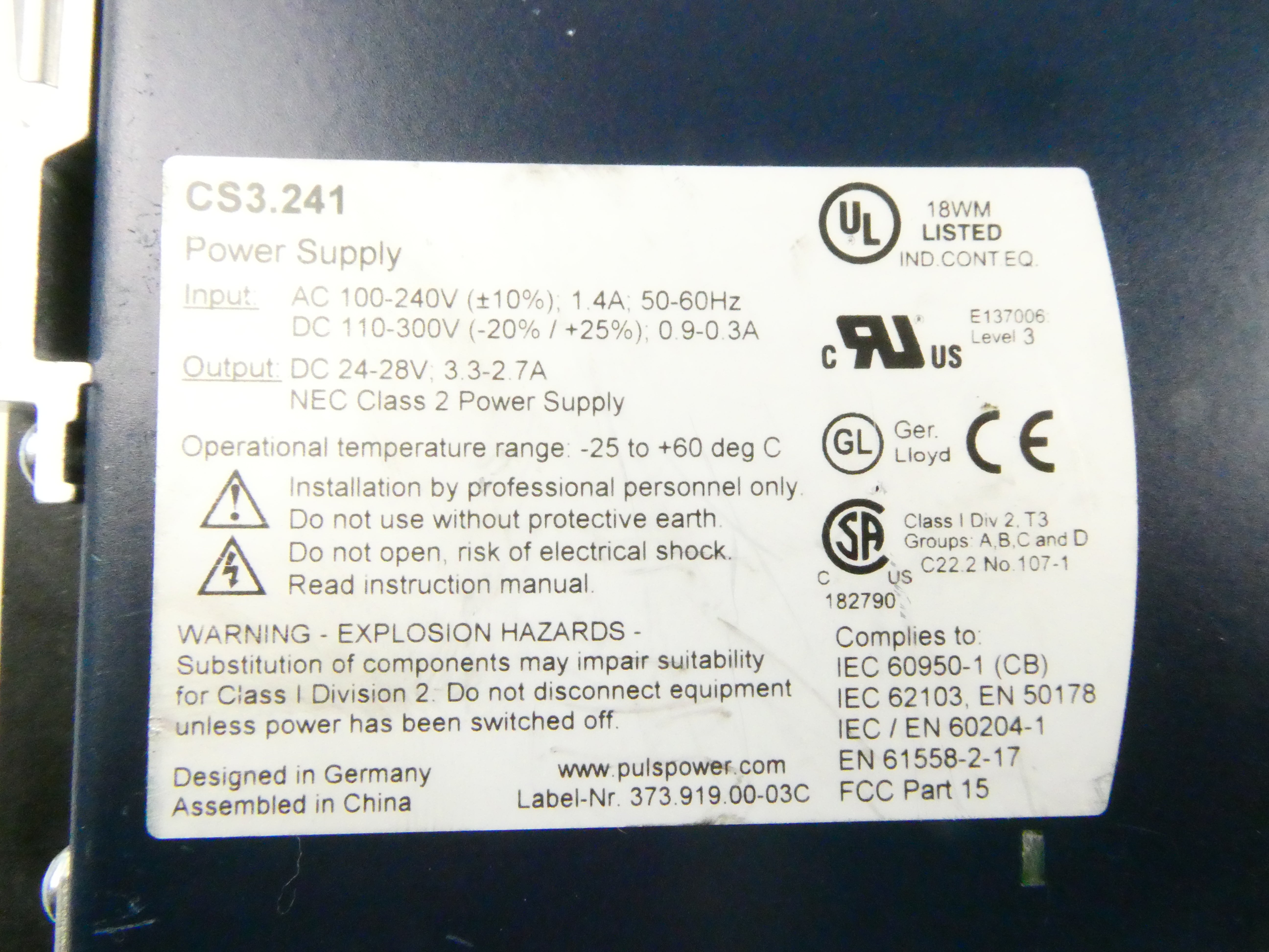 PULS CS3.241 DIMENSION POWER SUPPLY