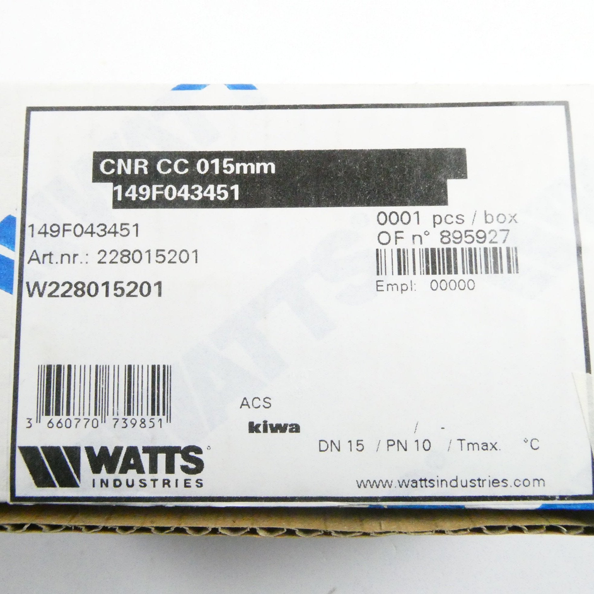 WATTS W228015201 RÜCKSCHLAGVENTIL EA/CC15 (15mm 2x Kompression)