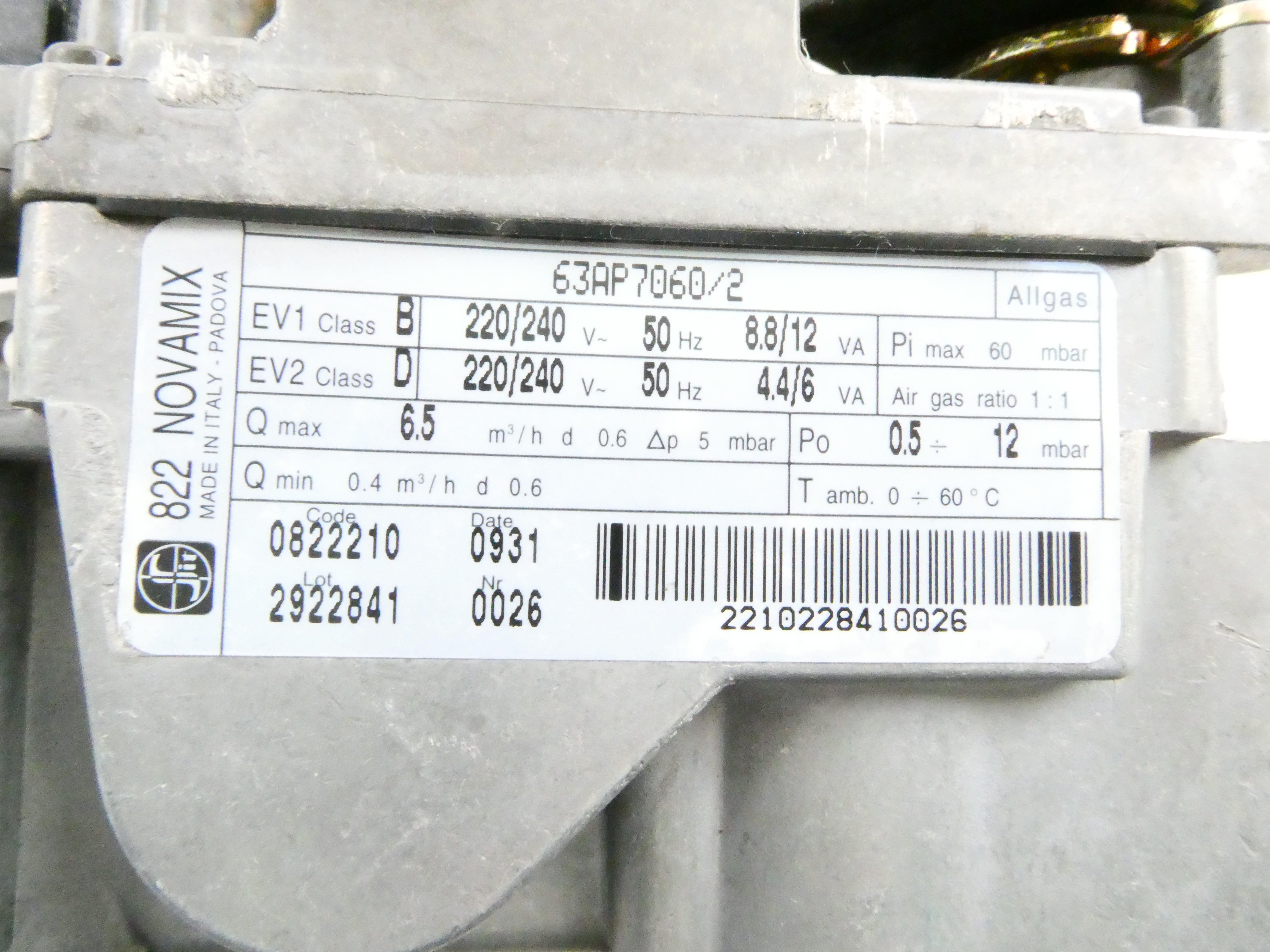 SIT 828 NOVAMIX 63AP7060/2 / 0822210 GAS FITTING *