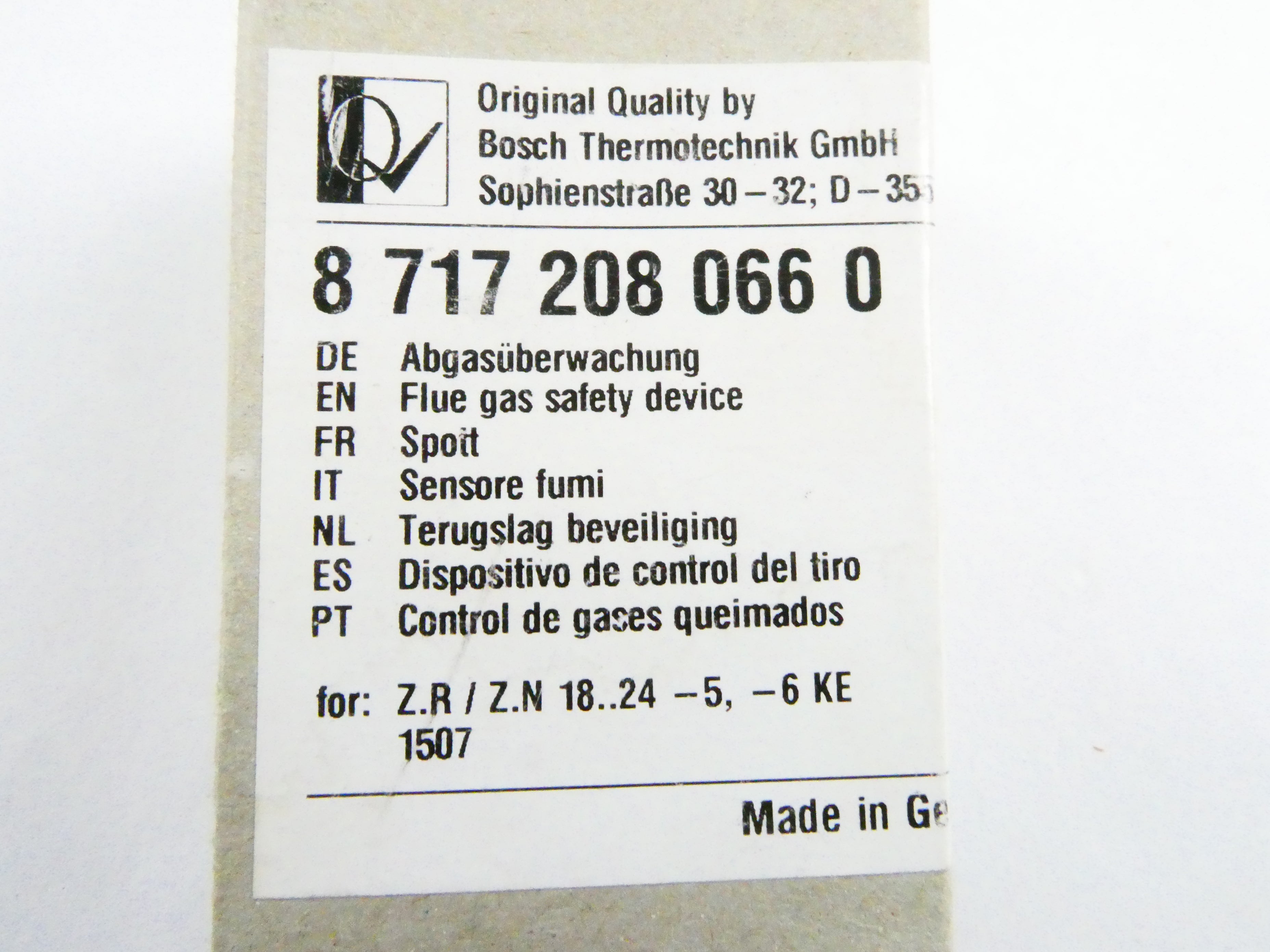 JUNKERS / BOSCH 87172080660 EXHAUST GAS MONITORING (ZR/ZN, KE)