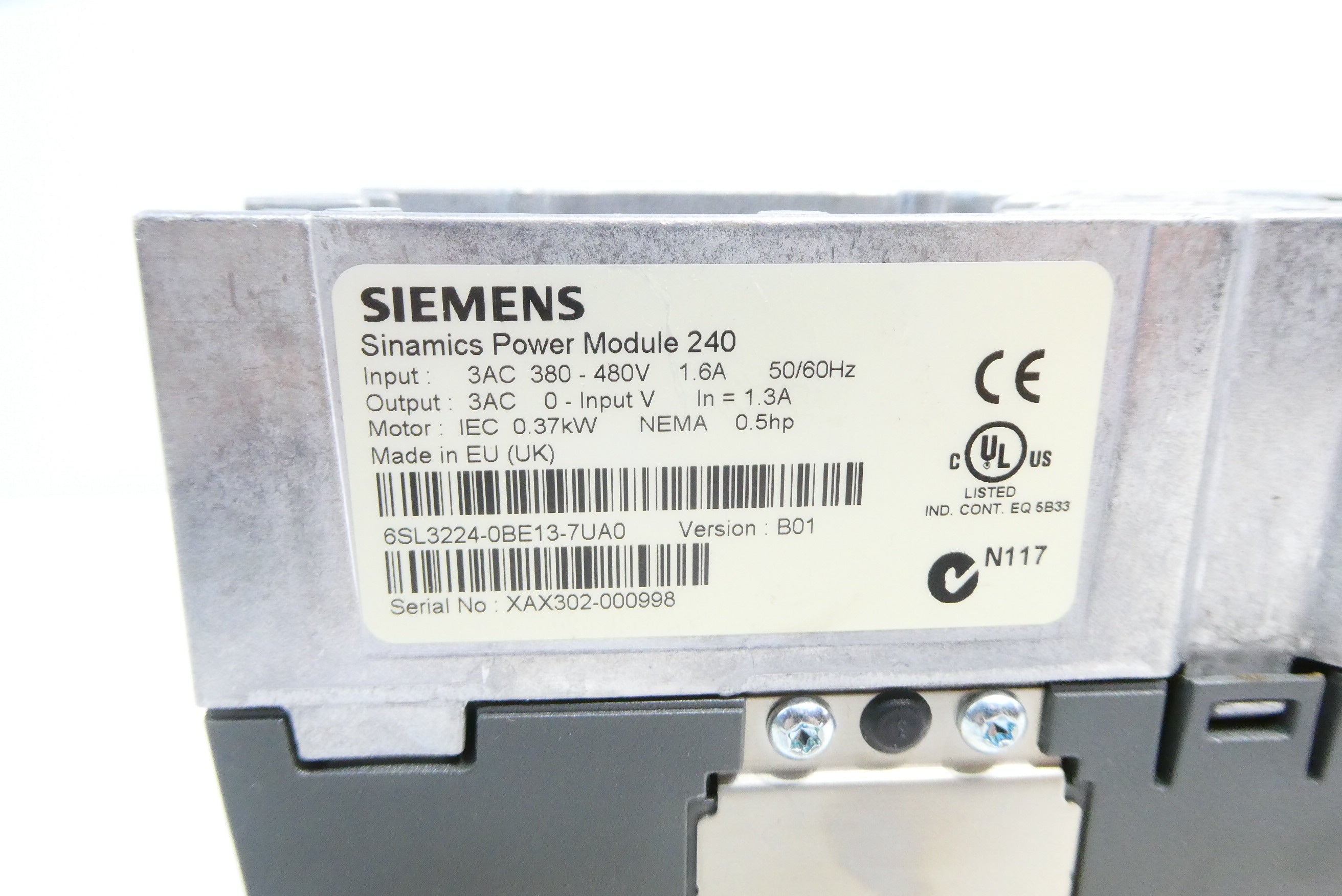 SIEMENS 6SL3224-0BE13-7UA0 (0.37kW) SINAMICS POWER MODULE 240