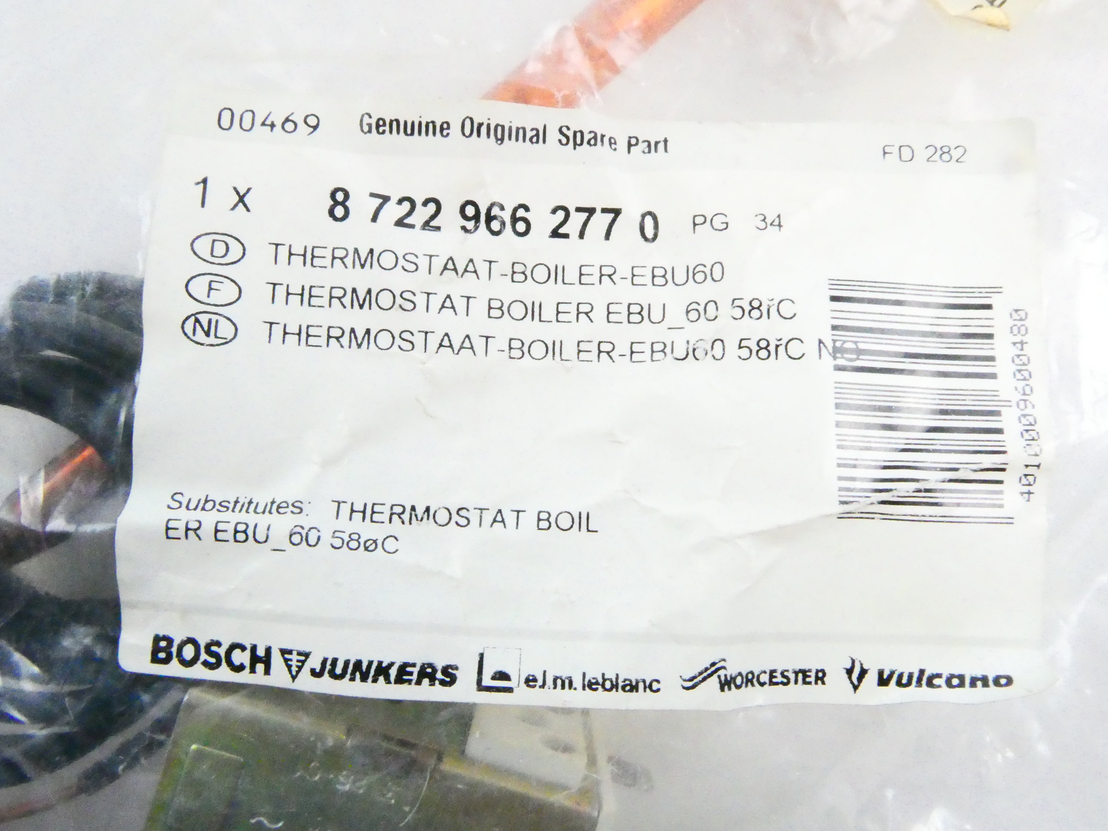 BOSCH 87229662770 THERMOSTAT CHAUDIÈRE EBU60 (ER BU_60 58°C)
