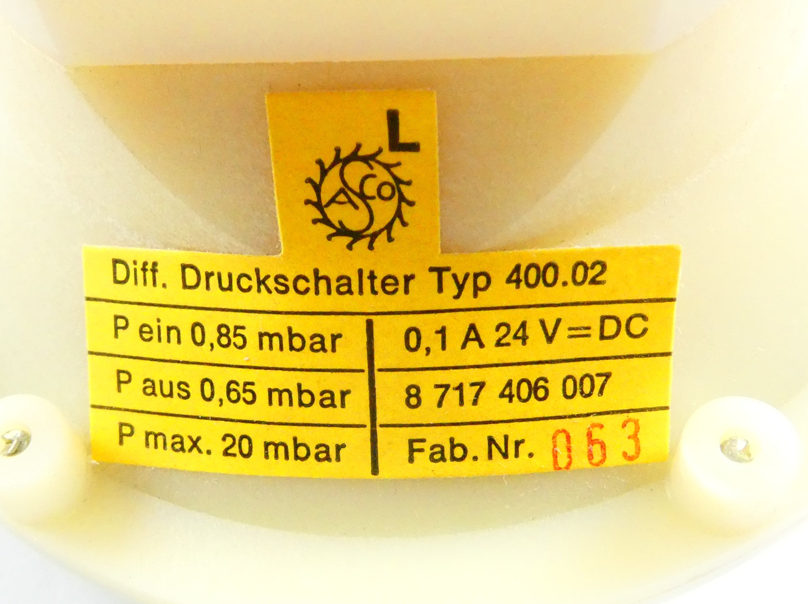 JUNKERS / BOSCH 8717406007 PRESSOSTAT DIFFÉRENTIEL (400.02)