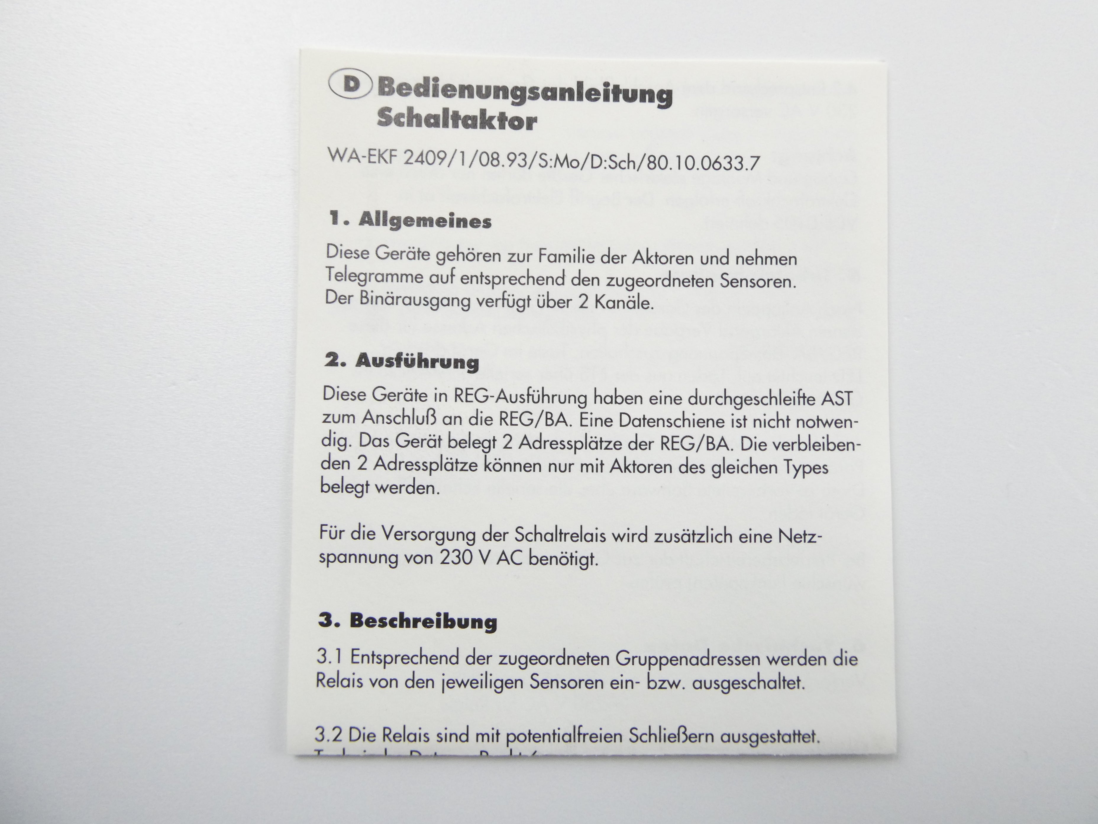 GRÄSSLIN V86/2 RS EIB "OFF" (17.07.0002.1) SORTIE BINAIRE 2 VOIES EIB