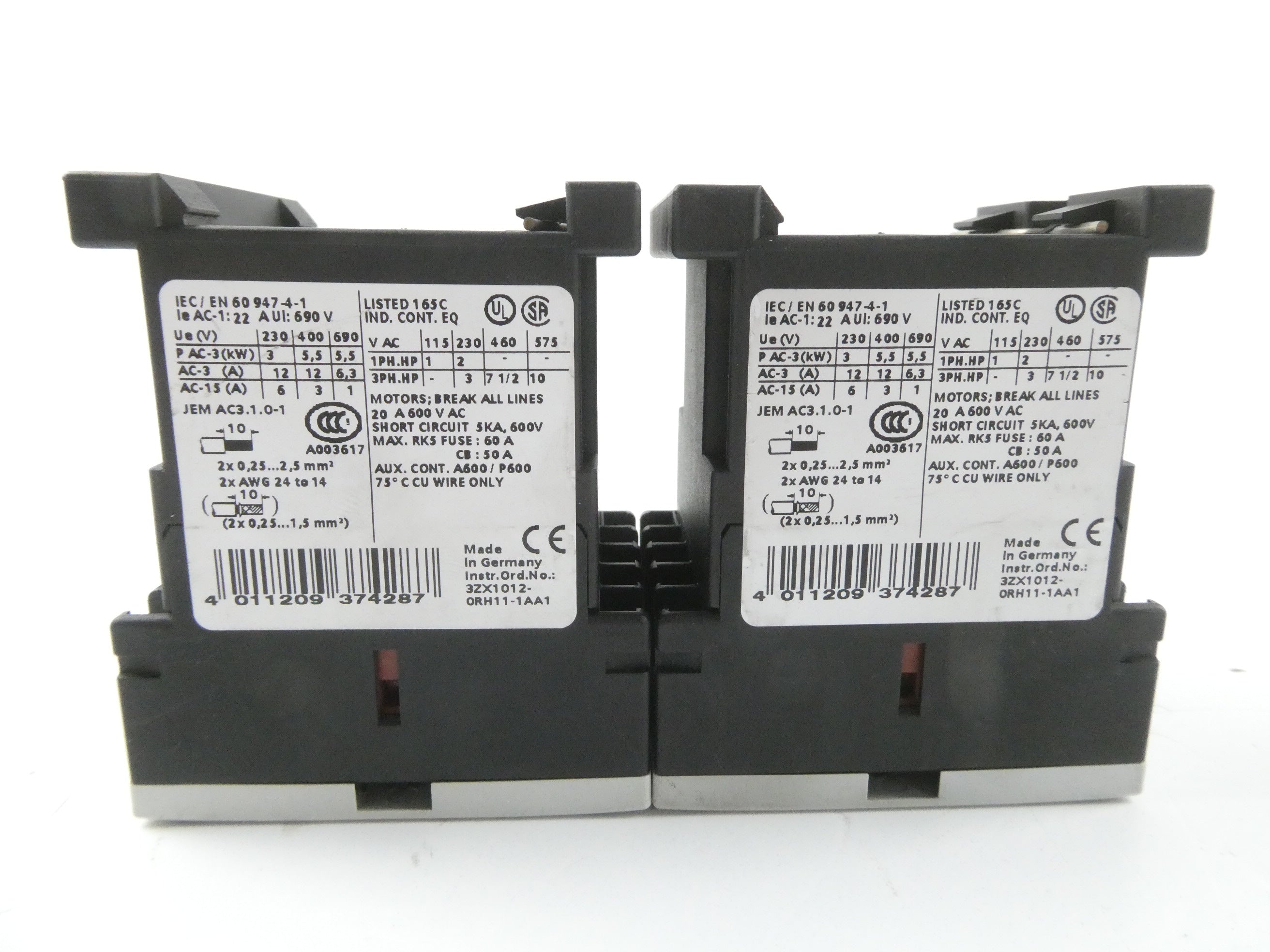 2x SIEMENS 3RT1017-2BB41 SIRIUS (DC24V) LEISTUNGSSCHÜTZ - set of 2